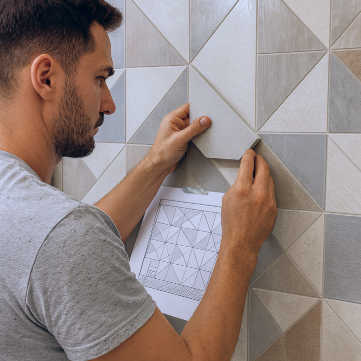 A megtervezett kiosztás alapján előre levágjuk a szükséges elemeket a közösen beszerzett burkolóanyagokból és részletes útmutatót készítünk a lerakáshoz. A burkolónak vagy Neked már csak a helyére kell raknia mindent, mely gyorsabb, precízebb kivitelezést eredményez.